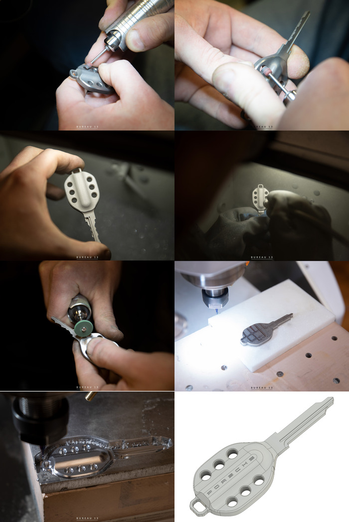 Начинаем с ключа зажигания на классический Porsche. Сделан из титана. Дизайн американский, мы лишь добавили ухо и исполнили.