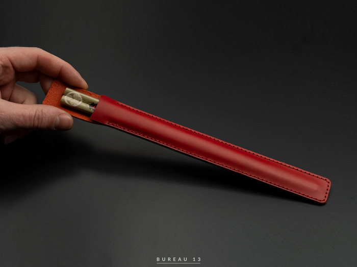 Чехол для японских палочек — простая, аккуратная и красивая вещь. Палочки из Японии, кожа из Италии, а собрано у нас. Со слов клиента будут храниться 20 лет в подарок для дочери.