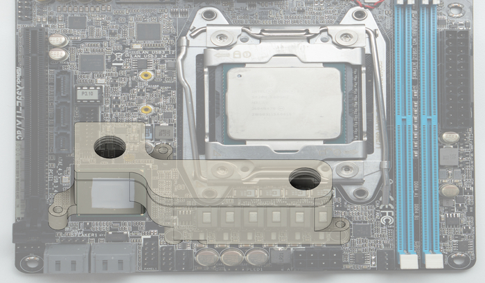 Интересное задание для кастомного компьютера. Водный радиатор охлаждения, объединяющий две точки отбора тепла в одно тело. Сделан методом фрезеровки из плиты меди. Дальше сварен лазером в одно тело, отполирован вручную и покрыт никелем, проверен на герметичность. Встал как родной, заказчик доволен, говорит работает очень хорошо, большой запас теплоемкости.