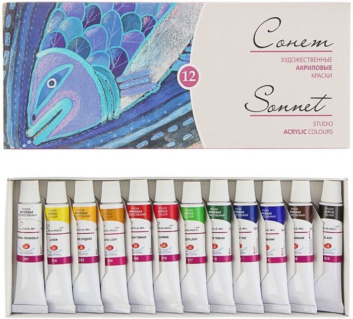 Для детальной раскраски использую художественные акриловые краски Сонет.