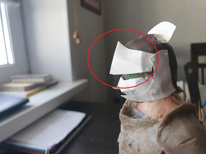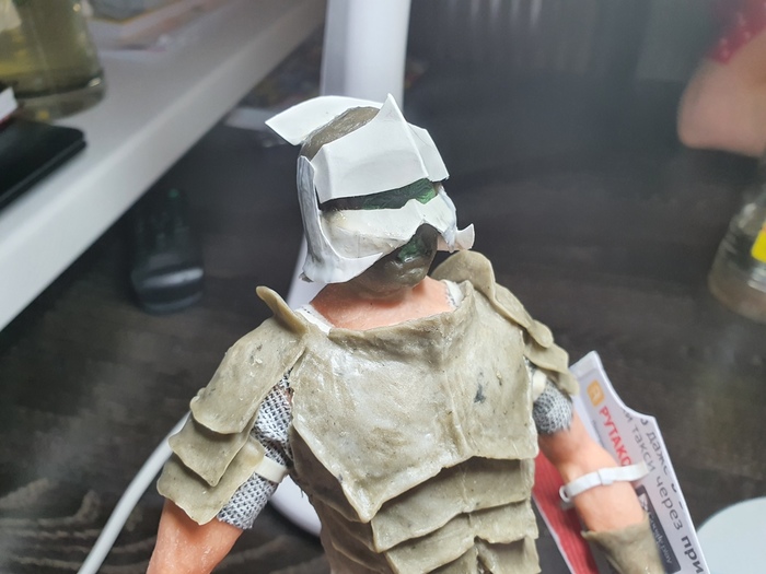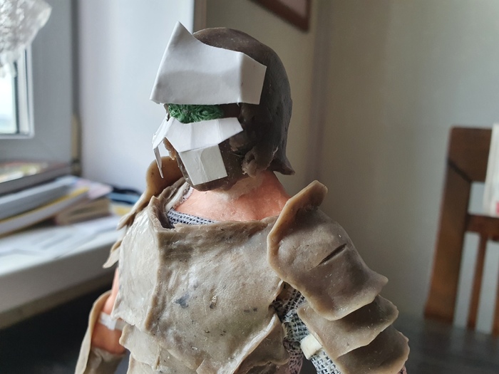 А пока готовится кот, восстанавливаю шлем, но уже в ином форм факторе. Часть делаю опять из бумаги, а часть леплю из своей крахмальной масссы.