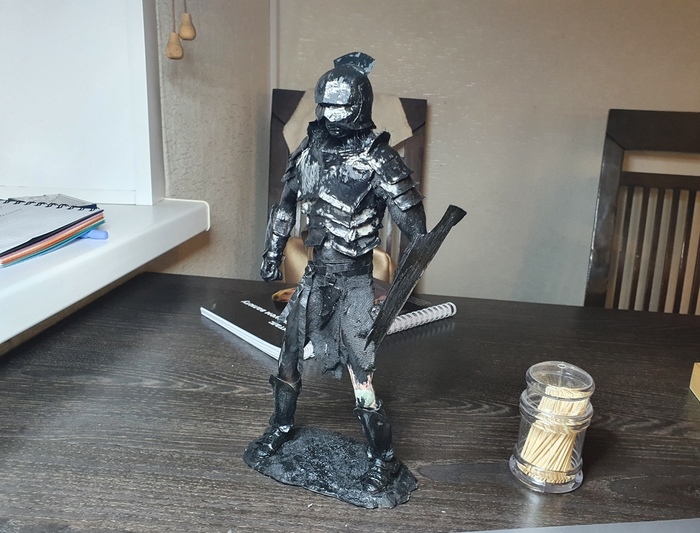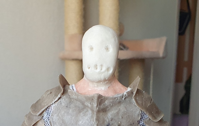 Я не рассчитывал возвращаться к этой поделке, но коварное домашнее животное в формфакторе кота, уронило мою фигурку с полки. В результате инцидента фигурка получила увечья различной степени тяжести, а кот получил удар надфилем в печень.