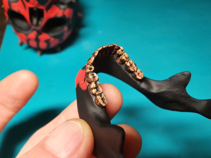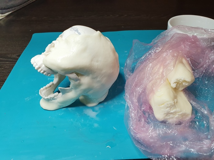 Что бы язык сделать бугристым, я жидко развёл массу и методом "Тык, шлёп, ляп" нанёс её на всю поверхность языка. Тогда, мне это казалось хорошей идеей...