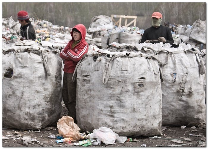 Это один из мусорных полигонов г. Новосибирска. Все что туда поступает , сортируется вплоть до тряпок и идет на переработку. Это к тем кто постоянно ноет что у нас мусор не распихивают по разным урнам и не перерабатывается. Все просто свозиться в одно место и там идет в дело. Это съемка 2010 года. Работники свалки это или приезжие из ближнего зарубежья или из сельской местности, приезжают и не далеко снимают дачи и работают. Бомжей очень мало. Некоторые приезжают на личном транспорте. На 2010 год средний дневной заработок был 600 рублей , это по словам одного работяги, скорей всего больше. Иногда привозят просроченные пищевые продукты, тут веселее, при мне привозили много коробок с горчицей , все быстро разобрали данными работягами.