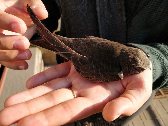 Ребят, нашел вот такого красавца-стрижа на дороге, признаки жизни активно подаёт, только не летает, хотя крыльями машет активно.