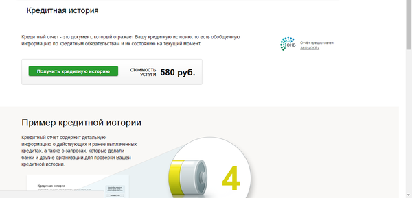 Сбербанк предлагает новую услугу "Кредитная история" за 580 руб.