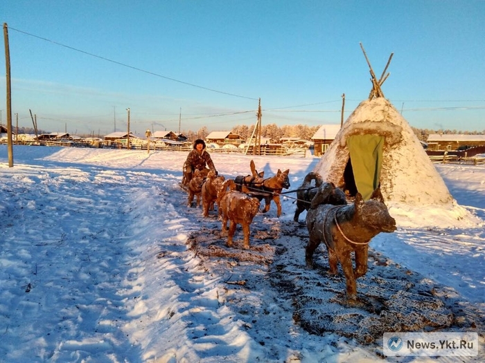 В центре села Уолба появилась композиция собачьей упряжки и урасы из навоза! Работу он завершил в четверг, 28 декабря.