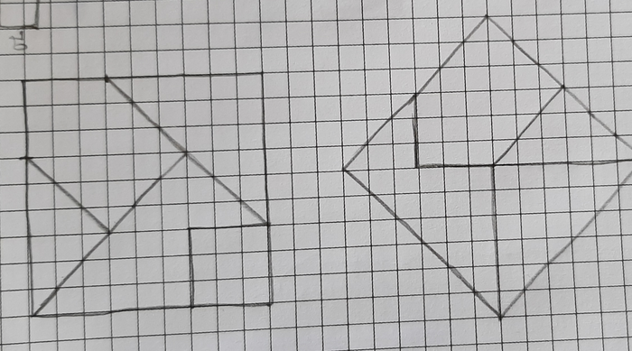 Для этого задания я сделала головоломку «два квадрата»: начертила схему на бумаге, потом – на картоне, а потом вырезала.