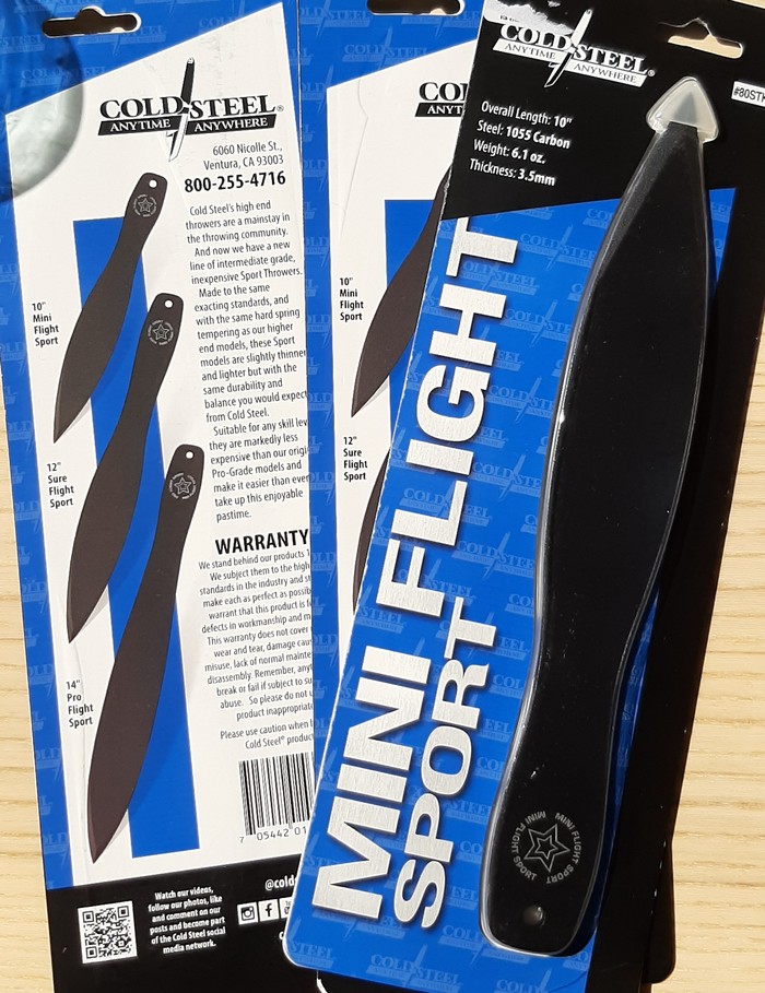 Прошёл год с тех пор, как я уговорила моего молодого человека со мной встречаться, и было решено что-нибудь ему подарить. Выбор пал на набор метательных ножей. Это Cold Steel Mini Flight Sport, неплохие ножики для начинающих.