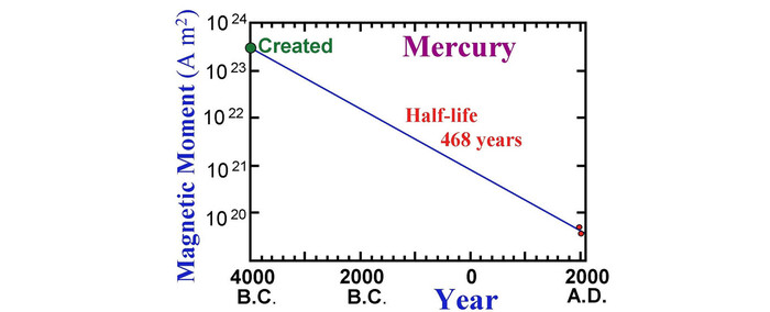 В 1984 году др. Рассел Хамфрис провёл расчёты и спрогнозировал: поле Меркурия должно быстро слабеть, если планетам 6000 лет согласно Библии. В 2008 году зонд НАСА Messenger измерил поле Меркурия.