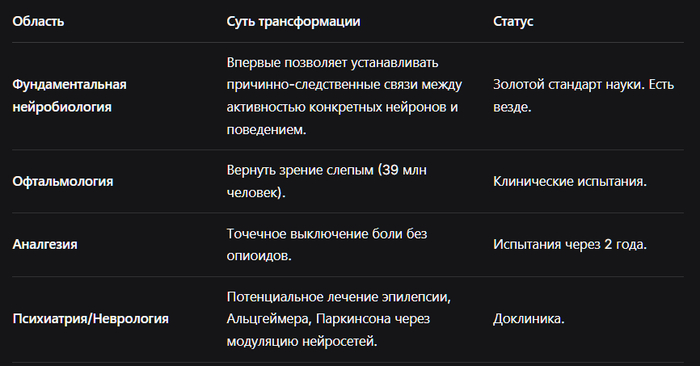 В ганглиозные клетки сетчатки пациента (до установки симбионта) доставлен вирусный вектор с геном канального родопсина.