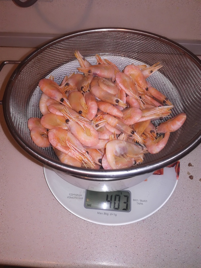 Дано: были приобретены креветки 70/90 замороженные в гофроящике, вес нетто 5 кг, стоимостью 125 руб/кг. После продолжительного поедания осенила мысль узнать, сколько стоит поесть мяса креветок если освободить их от глазури, очистить от панциря и лишить головы. При проведении эксперимента НИ ОДНА креветка не была съедена до окончания анализа.