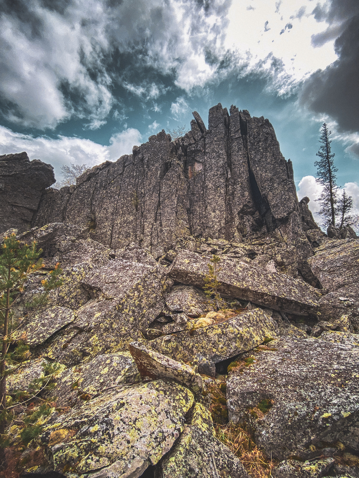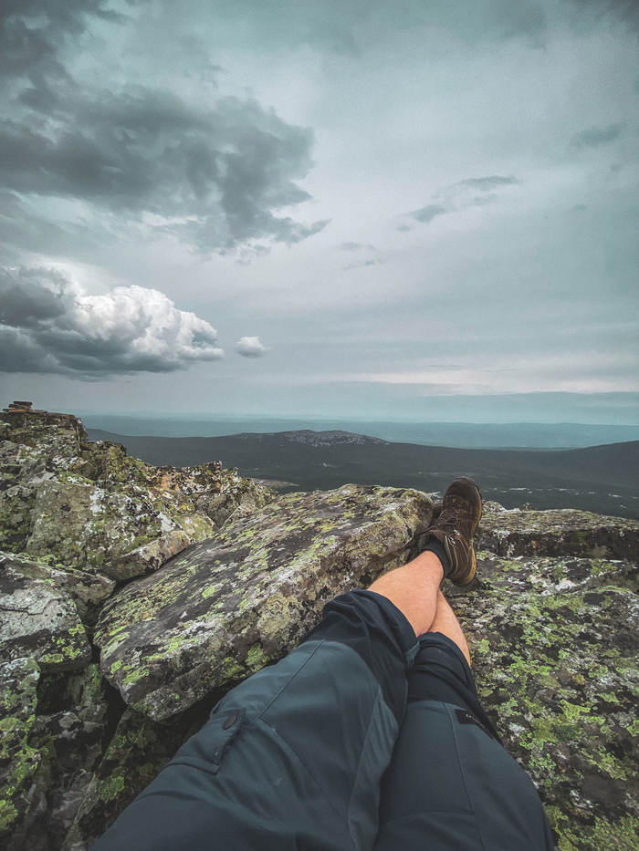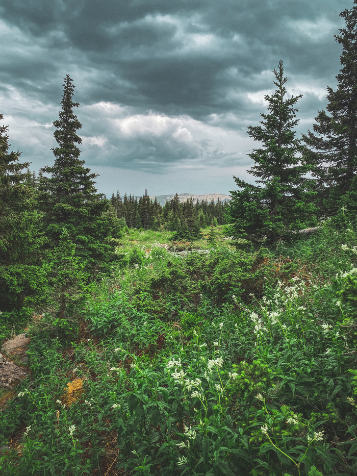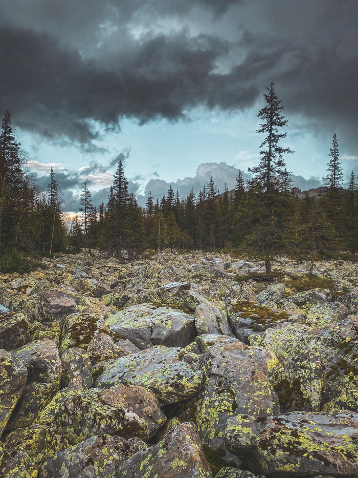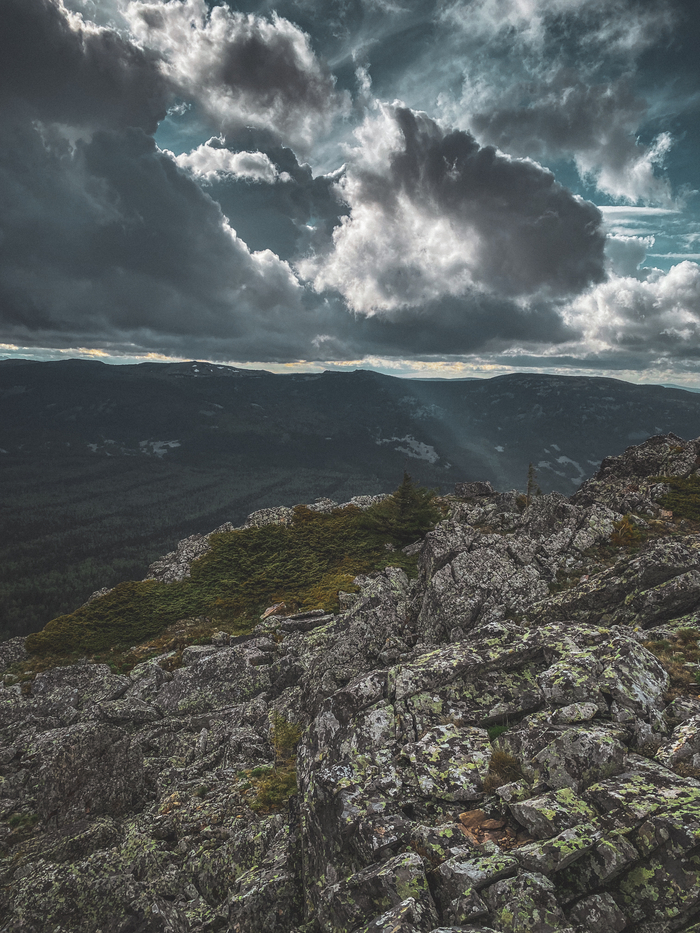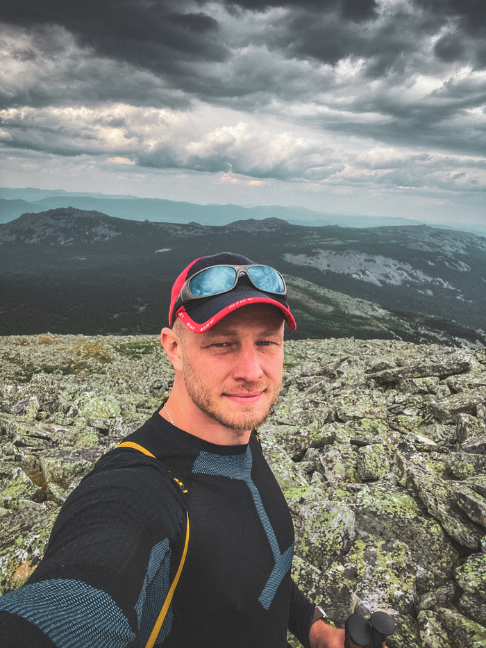 Лето было сравнительно тёплым и малоснежным. Примерно такая мысль приходит в голову последнее время когда вроде бы и июнь, но все ходят в куртках) Все это конечно заставляет задуматься, когда собираешься в очередной походик и думаешь «а может зимний спальник взять»🤔 Тем более длинные выходные позволили осуществить давнюю мечту и съездить в места, которые вроде бы и рядом, но из-за природных парков, заповедников и высоких гор, добраться туда быстро не получится)) А там есть на что посмотреть и где походить. Это хребет Кумардак в Белорецком районе солнечной Республики Башкортостан. Первые «интересности» начались уже через несколько км от поворота с м5 на Учалы: довольно неплохих размеров лось неспешно переходил дорогу и как бы напоминал куда мы едем)) А дальше была пренеприятнейшая дорога от Тирлянского до Верхнеаршинского, ночной переход до большой миселинской поляны и то ли поздний ужин, то ли ранний завтрак)) На следующий день несложный маршрут до подножия горы Машак(Медвежья). Единственное препятствие в виде каменной реки было преодолено без проблем: курумник сухой и идти по нему одно удовольствие, даже с рюкзаком( думал я тогда)) После обеда сходили на гору, посмотрели на очень красивые виды вокруг: хребет Кумардак во всей красе, вдалеке Инзерские зубчатки, хребет Машак и гора Колокольня - высшая точка хребта Кумардак. Затем прогулялись до вершины 1317. По карте между вершинами было показано то ли озеро, то ли болото и мы решили проверить))) По факту это оказалось верховое болото со всеми его атрибутами: низкие березы, своеобразная красота и, учитывая непрекращающиеся дожди, довольно много воды. Ну а на следующий день решили сходить на высшую точку хребта высотой 1354 метра, тем более погода позволяла. Добрались без проблем, изредка встречая следы пребывания местных жителей, даже гадюку напугали…или она нас, преодолевая небольшие курумнные выходы, буреломы и болотца. Забрались на перевал, а дальше привычный уральский курумник. С этой вершины вид ещё более эпичный, а низкая облачность придаёт особую атмосферу. А ещё одному из участников пришла в голову довольно интересная мысль: времени достаточно, световой день длинный, а почему бы нам не заглянуть одним глазком в заповедник и не прогуляться до Углового Машака?🤔 А почему бы и нет))) Потихоньку спустились в долину Юрюзани по различной паршивости курумнику и вперёд, к следующей цели нашего путешествия)) Тут места совсем дикие, много следов, лёжек животных, присутствия человека нет совсем….что в общем-то и неудивительно))) В очередной раз преодолели верховое болото, перешли несколько рукавов каменной реки, откуда берет своё начало река Юрюзань и снова наверх: на вершину 1383м. Гора хоть и ненамного выше, чем Колокольня, но рельеф отличается: более пологая, больше курумных ступеней, да и размер камней в некоторых местах просто гигантский. С вершины не менее красивые виды: долина Юрюзани как на ладони, Зубчатки, хребты Кумардак, Нары, Машак, вдалеке в дымке Большой Иремель, да и «злая гора» совсем уж рядом))) правда половина ее закрыта низкой облачностью. А ещё хорошо видно обратный путь до лагеря….как же далеко идти))) Ну что же, как говорит один из участников нашего похода: «Хеликоптер нихт! Попистофали.»)))) И снова почти тот же путь и все в обратном порядке: курум, болото, буреломные завалы, 