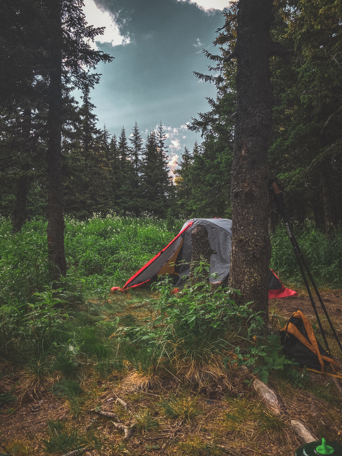 Палатку поставил в очень уютном месте у истока Тыгына в зарослях щавеля под крышей пихт и елей. Здесь совсем тихо, лишь журчание ручья, пение птиц и редкие порывы ветра, как будто попал в параллельную реальность, хотя примерно в 300 метрах проходит верхняя тропа, по которой довольно оживлённое движение. Вечер по стандартной программе с вкусным ужином, созерцанием костра и в тишине, а так как был один, то наконец то смог дочитать главный эпос башкирского народа - Урал-Батыр. Все-таки такие произведения лучше читать в подходящих местах, как это, ведь совсем рядом сын Урала разрубил каменную твердь Иремеля, откуда появилась Агидель, а с вершины виден поверженный Азрака, ну и по совместительству самая высокая гора в наших краях - Ямантау. К утру погода подпортилась и, выйдя из палатки, стало понятно, что это не туман окутал склоны горы, а низкие облака проносятся под ногами. Назад пошёл по верхней тропе, немного прибрал помойку на своротке к Байсакалово, послушал тишину(в воскресенье туристов в разы меньше). А почему как дома…сколько бы раз я не бывал в этих местах, всегда чувствовал уют и умиротворение, может это и действительно есть место силы))
