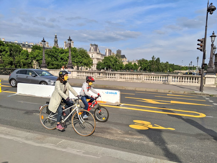 В Париже экстренно создаётся временная велосипедная инфраструктура. (Источник на французском). Мэр города сообщает о том, в Париже более 1000 км велодорожек и ещё 50 создаются сейчас.