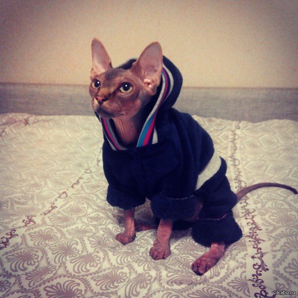 17 jul9shka Котейка 10 лет назад Я слышала, что тут любят котиков. Просто мой лысик в спортивном костюме :3 Кот Домашние животные