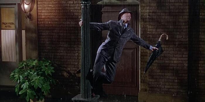 Классический мюзикл о переходе немого кино в звуковое. Весёлый и искрящийся оптимизмом. Здесь же — знаменитый танец Джина Келли под дождём, снятый с температурой под настоящими струями воды. Это буквально целая инструкция о том, как любить дождь.