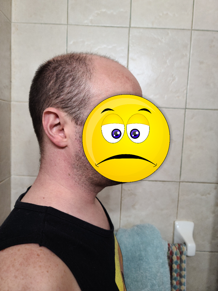 Знаю что наверное будут комменты что нормальный мужик просто все сбреет и будет нормально себя чувствовать. Но мне лысым быть не идет совсем, у меня очень большой лоб, я невысокого роста и я выгляжу как гоблин без волос. Одним словом меня просто не устраивает быть лысым и все.