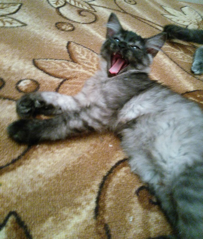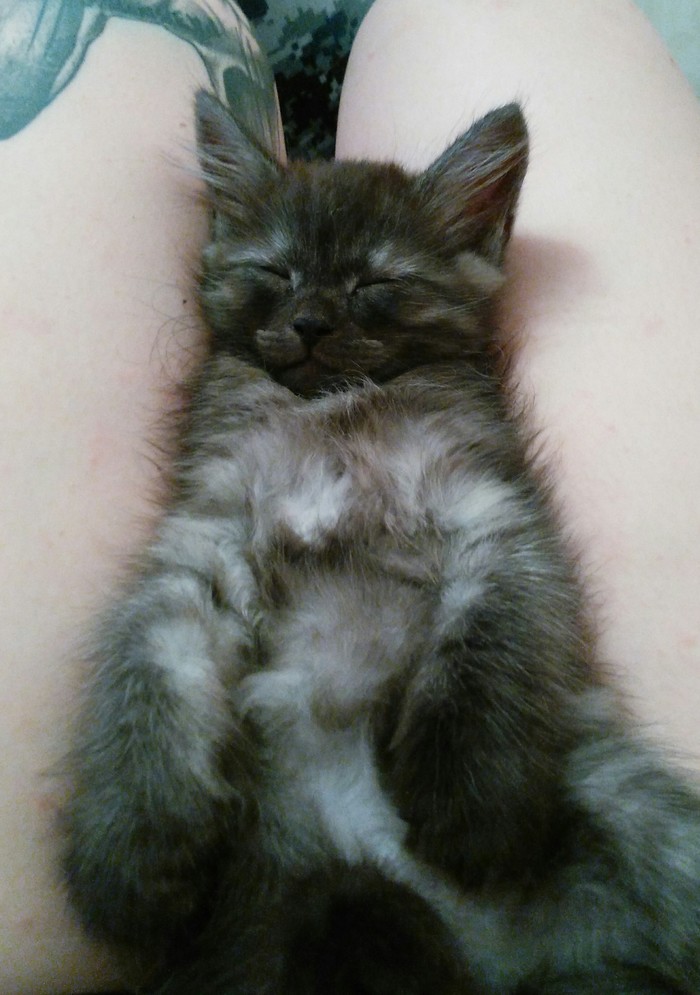 Вот такое чудо подбросили нам в подъезд. Пройти мимо не получилось, т.к. котейка повисла на джинсах, и сползать не собиралась. В квартире сориентировалась быстро, поэтому был сделан вывод, что просто "наигрались" и выкинули, объявления результата не дали, никто не позвонил. В связи с этим ищем новых ответственных хозяев. Котейка - девочка, с очень большими ушами и тонкими лапами, что придаёт ей довольно нелепый вид. Очень активная и ласковая, любит играть со всем, что ей попадётся, и не важно, её ли это хвост, или ваши ноги, будет укусано всё. Пока ещё небольшие проблемы с лотком, но это поправимо. Глистогонка пропита, паразитов не обнаружено. У себя не можем оставить, по причине, двух кошек, одна из которых неадекватно реагирует на мелкую котейку. Может среди пикабушников, кому приглянулось это создание? Корм для котят и две миски прилагаются.