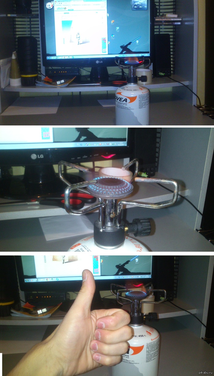 летом был в разъездах и жил в полевых условиях, приобрел себе портативную горелку дабы с утра заварить чаю не утруждая себя костром. Пригодилась вместо батареи