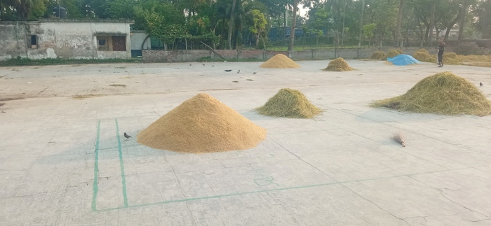 Этот рис раскидывают по площадке, тут же по нему сами ходят, собаки бегают.