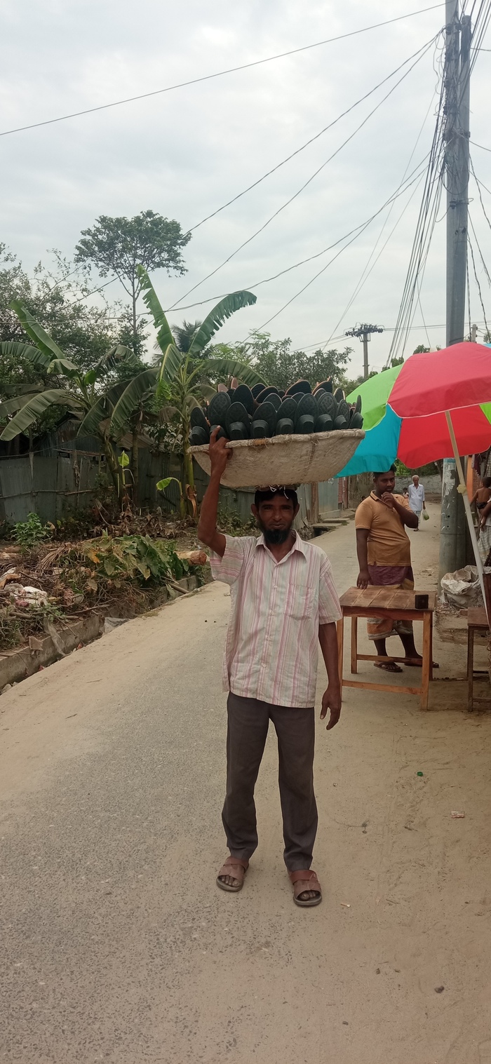 На головах носят всё что можно - корзины, мешки, кирпичи... Здесь корзина с обувью