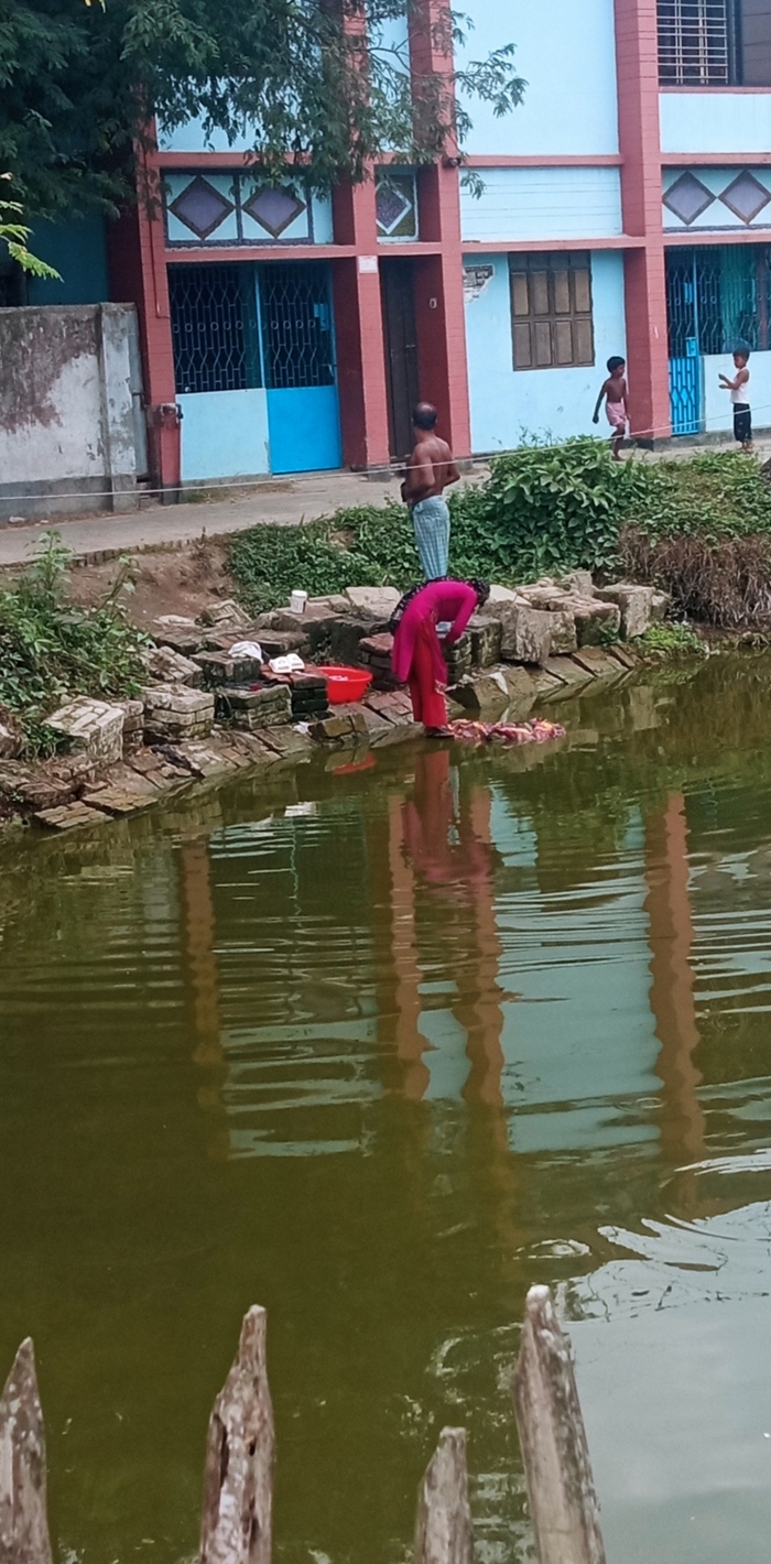 Изначально я думал что это пруд для разведения рыбы, потом я увидел как там купались дети, в следующие разы увидел как там мылся мужик, женщина стирала бельё (на фото). А потом случайно обратил внимание что в него есть перелив из канализации, опять же в следующий раз сфотографирую