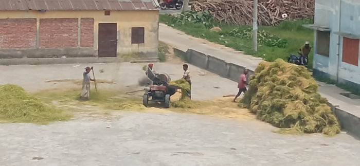 Потом видимо отбивают, процесса я не видел, но результат - отдельно рис, отдельно стебли. Что дальше происходит по технологии я не знаю