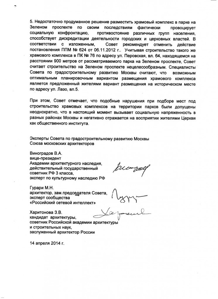 Строительство Храмового комплекса грозит парку полным уничтожением! Вот заключение специалистов – архитекторов: