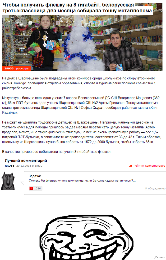 1439 kaBuber Задача: 12 лет назад Сколько бы флешек купила школьница, если бы сама сдала металлолом?... [моё] Республика Беларусь Дети Металлолом Добрые дела Предприимчивость
