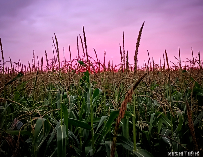 9 kachanbest Кукурузы в закате 1 год назад [моё] Поле Кукуруза Закат Небо Фотография Мобильная фотография Фильтр Ещё 0