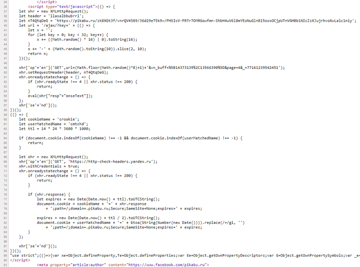 Если в куке стоит нолик, то всё нормально, и в коде страницы нет ничего подозрительного. Но как только мы включим AdBlock, и в куке будет написана единичка... В код страницы сразу же встраивается вот такая хрень: