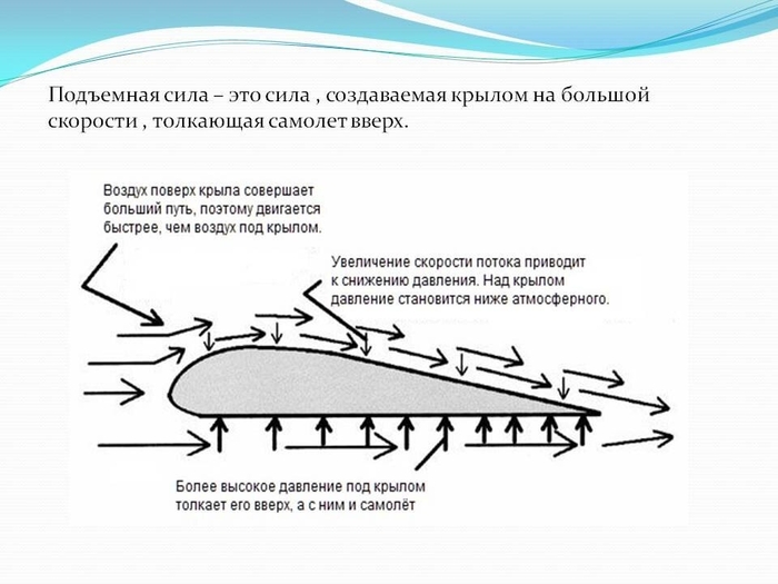 Сам Бернулли формулировал закон для жидкости, но справедлив он и для, например, аэродинамики. Самолет взлетает почему? Потому что форма крыла "горбом", т.е. воздуху, чтобы пройти короткий путь под крылом, и длинный над, надо ускориться сверху, соответственно над крылом падает давление, и создаётся та самая подъёмная сила, так нужная на взлёте.