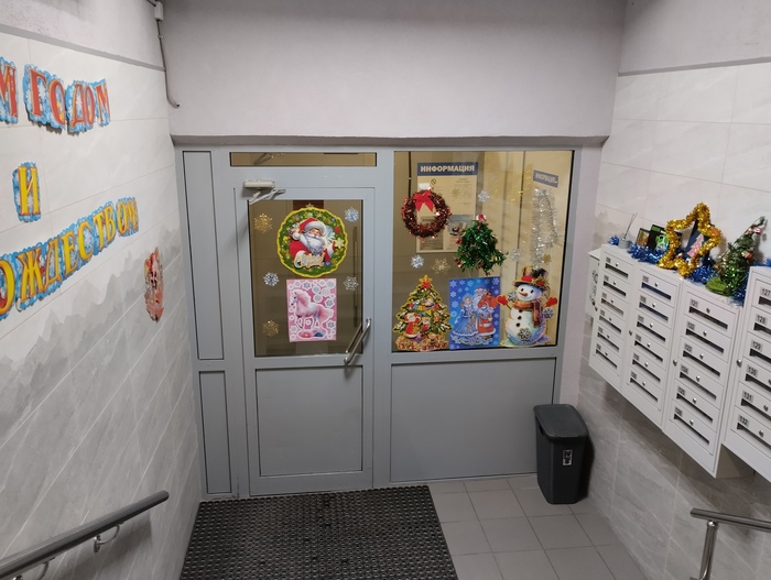 На фоне частых и многочисленных сообщений о невыносимых условиях бытия, «человейниках», месяцами неубираемых и годами не ремонтируемых подъездах, проходных дворах и хостелах, мерзких соседях, вандалах, маргиналах, наркоманах и прочем в таком духе, захотелось не то чтобы похвастаться, а просто поделиться радостью от того, что проживаю в таком приличном месте. Можно сказать: дом высокой культуры быта. Подъезд был украшен (и украшается ежегодно) в середине декабря. И поныне ничего не сломано, не оторвано, не украдено и не обезображено надписями, грязью или чьей-то блевотиной.