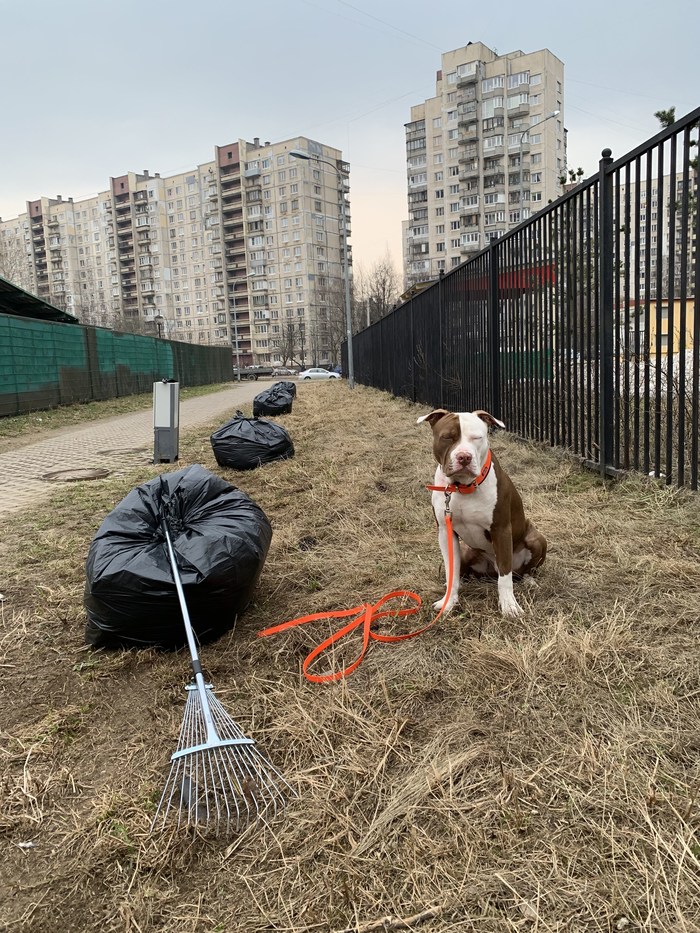 Пришел муж с работы, сфотографировал, он позже пойдет с собакой и отнесет мешки в контейнер для габаритного мусора.