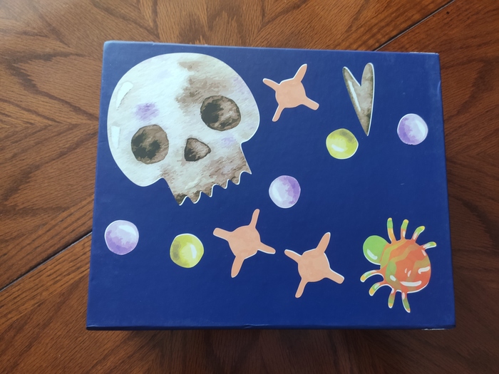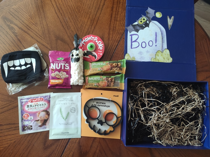 Первое - коробочка. Она очень приятно удивила меня своим оформлением, так со вкусом всё подобрано. Сохраню её и буду использовать каждый праздник для сладостей в стиле хоррор.