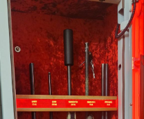 Что еще... обклеил внутренние поверхности сейфа красным бархатом и установил ложементы. Прикрутил все саморезами, прикрутил сейф к стене анкерами, ставлю оружие по местам... парам-пам-пам, у одного ружья приклад упирается в верхний ложемент и не встает как надо... твою же мать! Ну что ж, открутил сейф от стены, открутил верхний ложемент, поднял на 70мм выше, просверлил новые отверстия под крепление, новые отверстия под провода, снова прикрутил ложемент, снова прикрутил сейф к стене и выдохнул...