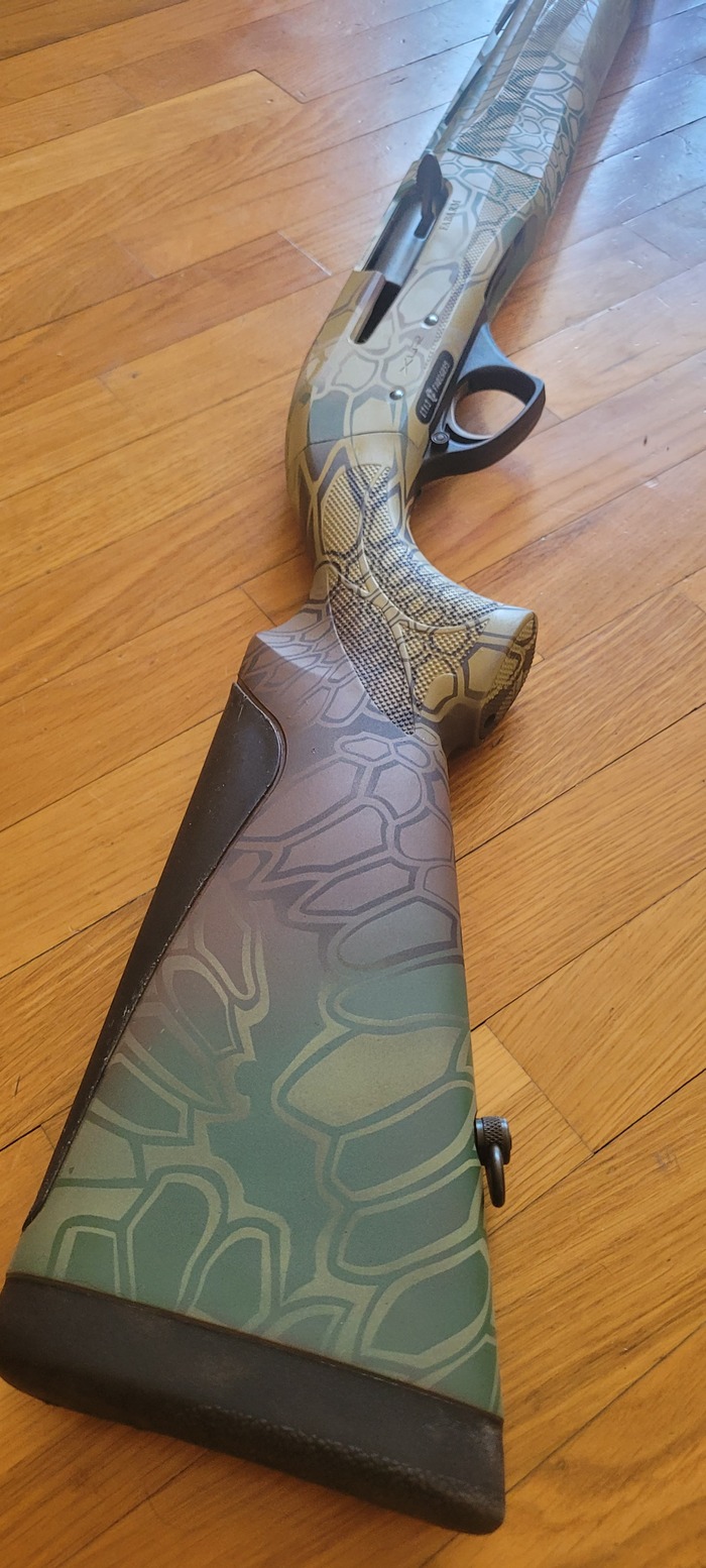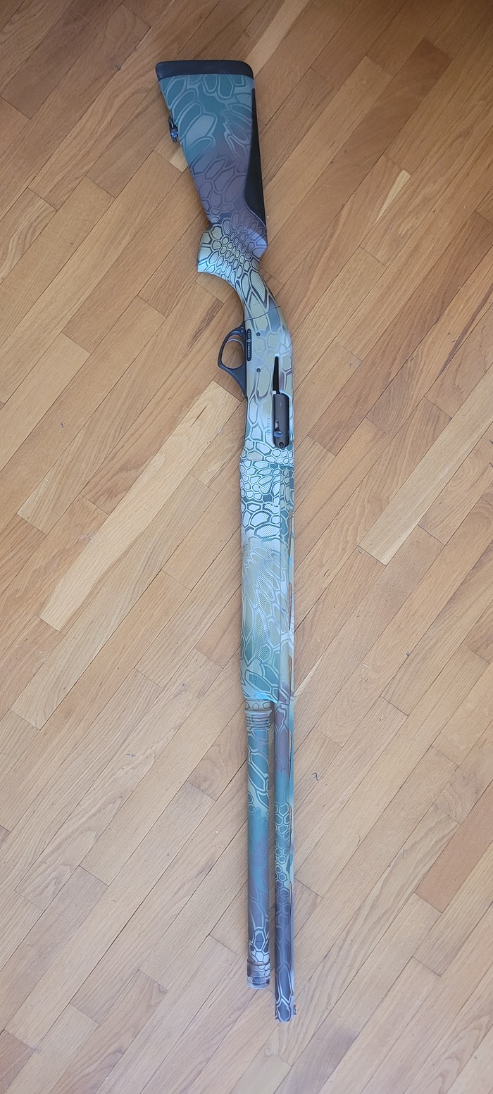 Год назад прикупил себе гладкоствольное ружья Fabarm XLR-5. Брал с рук, но состояние нулевое, из него раз 5 стреляли всего. Но была проблема с софт-тач покрытием приклада и цевья - видимо оно долго лежало или неправильно хранилось, в результате покрытие стало липким. На точность не влияет, конечно, но брать в руки неприятно... И тут мне подарили набор для покраски оружия Тайга, вот такого плана