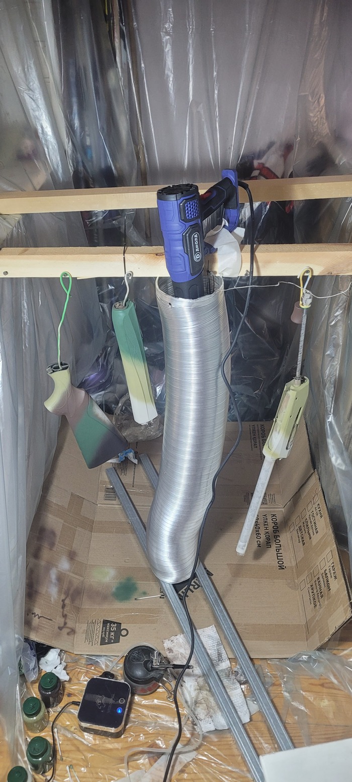 Для сушки использовал типа камеру из трубы и строительного фена, контролирую температуру