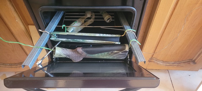 А дальше то что поместилось суши в духовке при определённой температуре, а ствол отдельно опять же в этой трубе и строительным феном