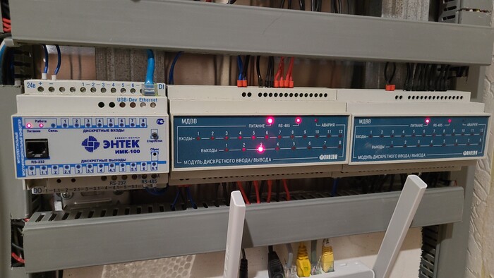 Всю автоматику было решено перевести на промышленные логические контроллеры ОВЕН. К этому моменту система на arduino показала свою низкую надежность. Модули постоянно зависали, приходилось их регулярно перезагружать. У этого перехода был только один недостаток - удаленное управление освещением после переезда на ПЛК ОВЕН перестало работать, это можно сделать, но за несколько лет руки так и не дошли разобраться.