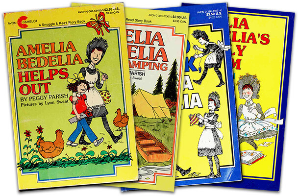 Просто огромная коллекция коротких детских книг из одной серии про одного персонажа — Amelia Bedelia. Книги проиллюстрированы, текста немного, читается легко. Истории на удивление увлекательны и забавны даже для взрослого читателя, особенно для того, кто изучает английский язык, т.к. забавные истории, происходящие с героиней, связаны как раз с ее недопониманием английского языка и возникающими в связи с этим курьезами. Автор первых книг — американская писательница Пэриш Пегги. Она написала лишь 12 книг из этой серии с 1963 по 1988 годы. Однако данная серия так полюбилась читателям, что даже после смерти автора благодаря настойчивым просьбам о продолжении серии племянник писательницы Герман Пэриш продолжил ее работу и выпустил еще аж 37 книг в период с 1995 по 2015 годы.