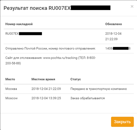 В начале недели заказал на известной китайской платформе ноутбук Xiaomi из России. Тут решил проверить трек-номер на сайте службы курьерской доставки (007ex), сайт мне сообщил, что посылка была передана Почте России (wtf?!)