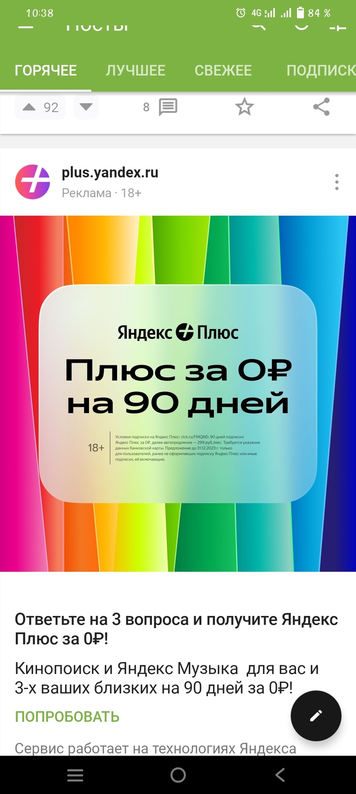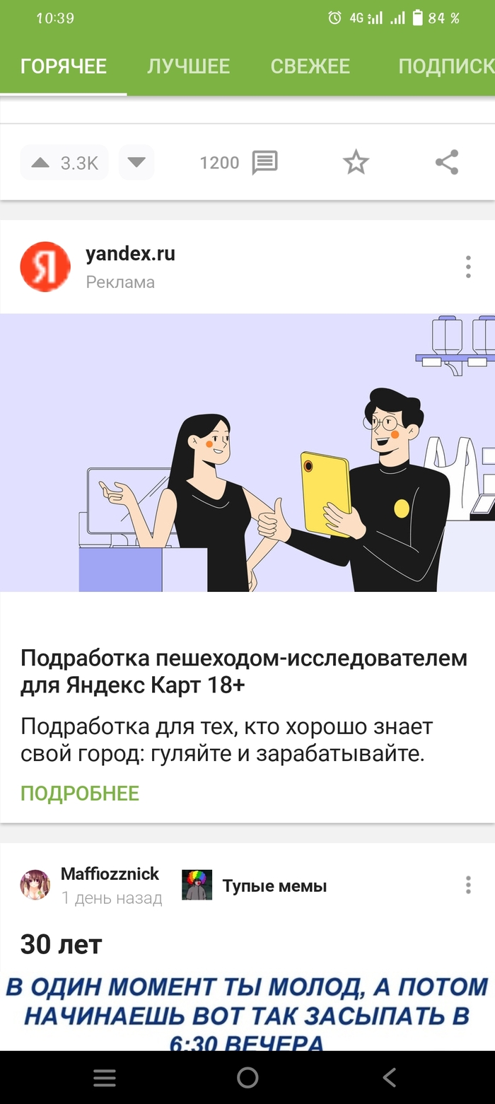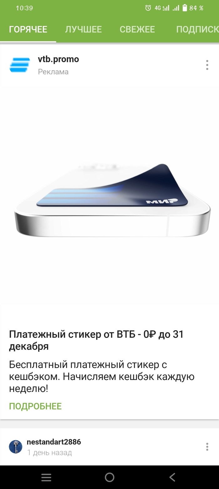 Листая ленту натыкаюсь на рекламу.