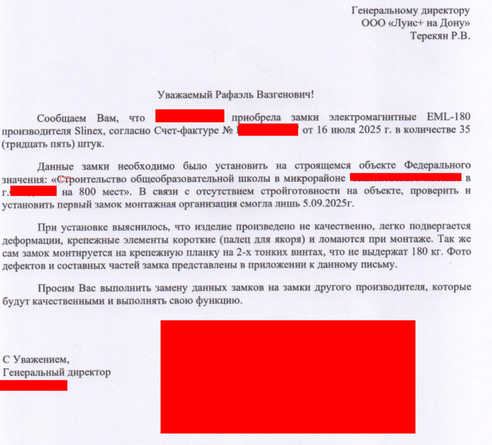 В ответ, долгая переписка и телефонные переговоры, в процессе которой минет-жер поставщика признался, замки полный шлак, но предупредить постеснялись, продать же хочется.