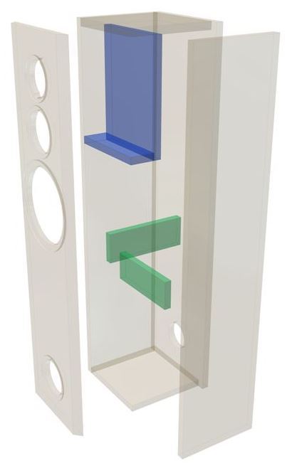 Копуса изготовлены из МДФ толщиной от 18 до 24 мм, отделка натуральным шпоном Rosenut. Made in England. Технические характеристики можно легко найти в интернете. Вся акустика в прекрасном состоянии и несомненно станет украшением вашей гостинной. Единственное, что хочу отметить: на верхней поверхности сабвуфера есть две едва заметные продавленности длиной 1 см (так, словно их провели непишущей шариковой ручкой), заметные лишь под одним углом зрения, да и то, если человек знает об их существовании. Будучи честным человеком, я обязан об этом предупредить.