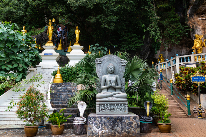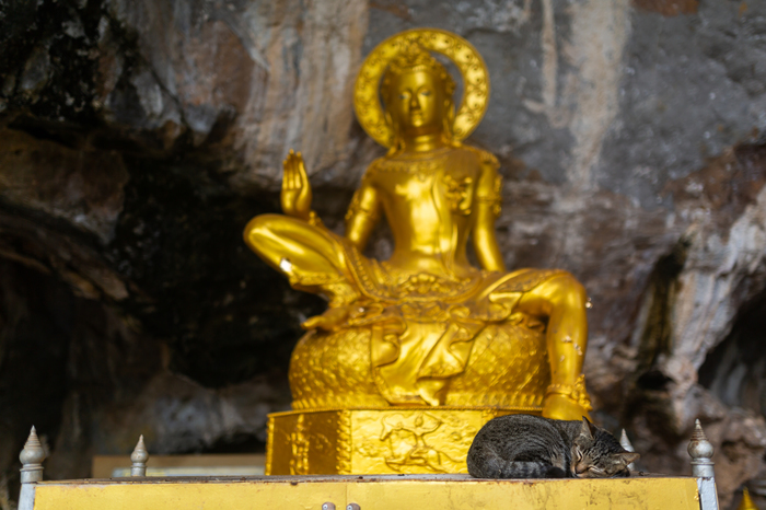 На следующий день я продолжил играть в обычного туриста, и купил экскурсию. Покатушки по джунглям на слонах, и подъем к статуе Будды на горе. Первое - не интересно, и жестоко.Второе - вызов) До вершины 1237 ступеней, и они не такие пологие, как мне бы хотелось... До вершины добираются единицы. Я промок насквозь от пота, даже рюкзак с техникой можно было выжимать, и с козырька кепки капало) Но оно того стоило. Внизу шикарные алтари, просветленный котик, а на вершине - огромный Будда и невероятные виды)