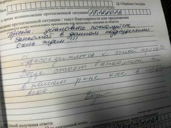 Последние не имеет отношения к почте, но действительно, в округе нет ни одного банкомата.