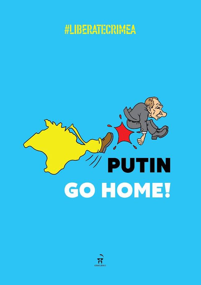 Сабж освоил мову потому перевожу: Я как глава администрации стратегического района, от которого зависит целостность всей Украины хотел передать бы всем кто там в Крыму накапливает ядерное оружие, боевую технику против украинского народа. Против Европы. И это показано на плакатах: они на нас оружием, а мы им отвечаем желто-голубым кулаком. Они на нас оружием, а мы отвечаем кровавой ладонью.. На этих плакатах мы видим такие надписи: "Путин геть додому". Так вот сегодня в планах Путина посетить полуостров Крым (дело происходит 18 марта), чтобы возгордится своим достижениями. И мы с пункта пропуска "Чонгар" передаем вам пан Путин всей украинской общественностью те слова, которые Андрей Ярмоленко (автор плакатов) уже пронес через все пункты пропуска с оккупированными территориями. Путин убирайтесь домой, ваш дом не Крым, ваш дом Российская Федерация. Чем больше вы будете посягать на Украину, тем скорее придет распад всей России.
