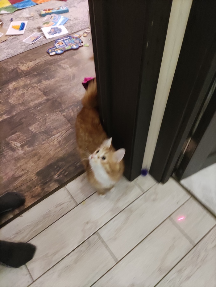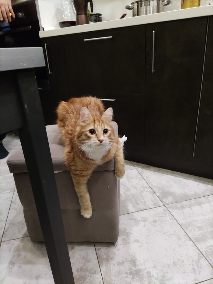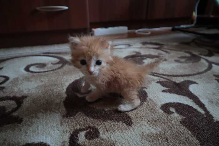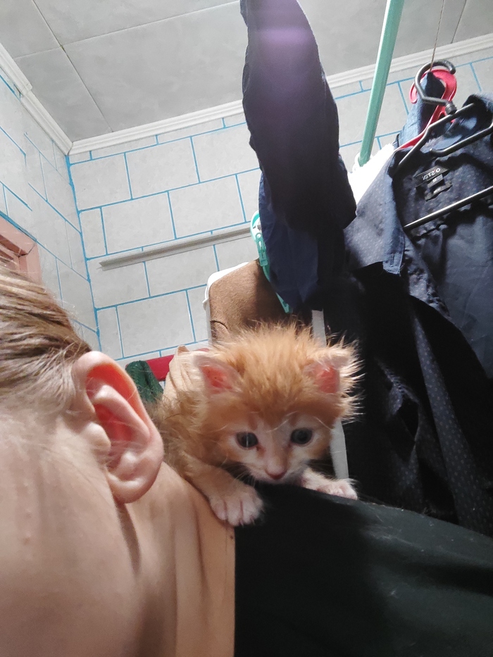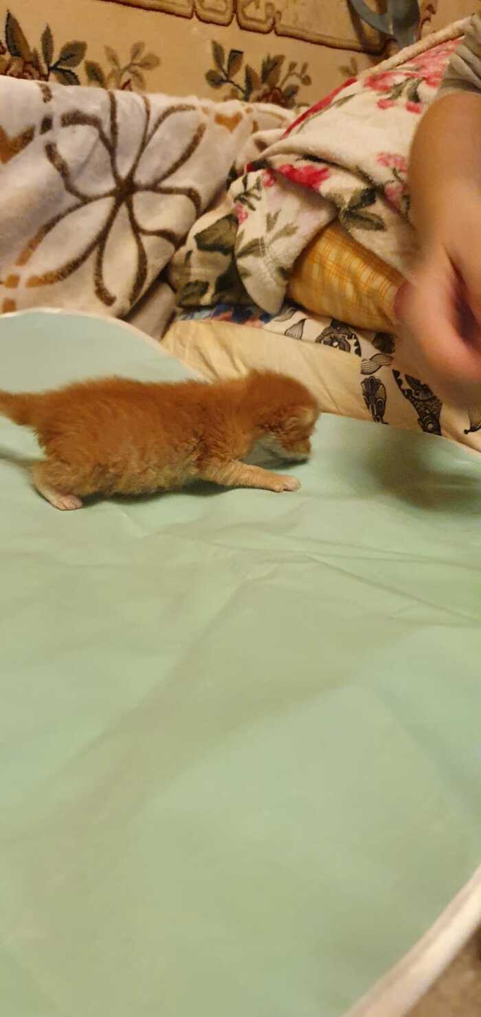 02.02.2022 мне привалило счастье. Рыжее, практически только что родившееся... Так случилось, что "гнездо" его мамы, в одном из подъездов нашего дома разорили. Судьба остальных котят мне неизвестна. Этого котенка я нашла под лестницей, когда шла гулять с ребенком. Брать найденыша на выхаживание я не планировала, тем более, что по улице вышагивала мать. Я доставила мать к дитю, дитё присосалась и я спокойно пошла на мацион. Увы, когда мы с дочкой вернулись, маманя котенка бросила и исчезла. Ну что ж... Я запаковала рыжего (котенок был рыжим) в коробку из под обуви, постелила ребенку и выставила у своей квартирной двери. Дочке тогда было 6 месяцев и плюс этой ситуации был в том, что котенка можно было накормить ее Семилаком, а минус в том, что оставить орущий комок в доме на ночь из-за чуткого сна дочки я не могла. Покормив котика из пипетки смесью, я положила в коробку пушистую грелку в виде барсука и оставила беднягу на ночь в подъезде...Мужу наказала, если котенок переживет ночь, покормить его, а если нет.... Но рыжий вышел и в 7.00 был забран мной в квартиру. Утром мы снова пошли гулять и я встретила у дома соседку по площадке. Она металась по улице в слезах и рассказывала знакомой, что котенок был и пропал. Я успокоила ее и поделилась проблемой. Выход нашелся, киса ночевала у соседки, а дневала у меня.